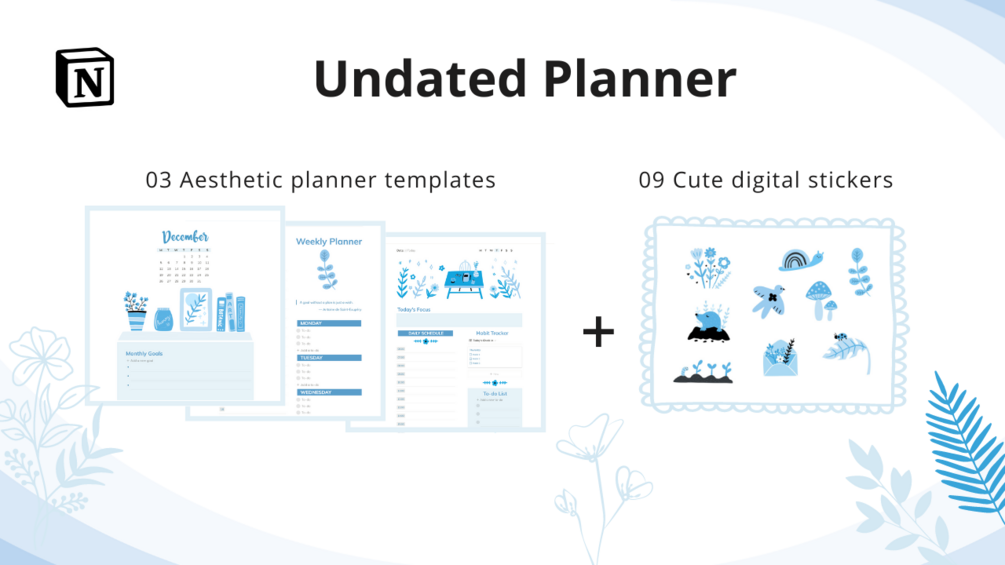 They are designed with functionality and aesthetics in mind. All the illustrations are hand-drawn in a specific style and color palette, making your planner visually coherent.